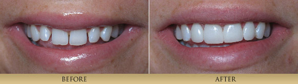 Through artistry and laboratory technique, we achieve outstanding and beautiful results restoring teeth with all- Porcelain Veneers and Porcelain Crowns. The cutting edge technology of adhesive bonding dentistry makes these restorations second to none. Many of the before and after cases you see here utilize this type of restoration-note their lifelike vitality. By removing unhealthy or cracked tooth structure and replacing it with natural looking porcelain, which fits the tooth like a thimble or jacket, we protect the remaining tooth structure and achieve a beautiful result.